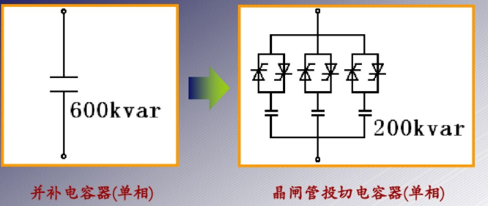 TSC補償原理和並聯電容器補償的原理是一樣的,隻是把電容器分成多組,根據負荷的實際大小確定投入補償電容器組的數量。